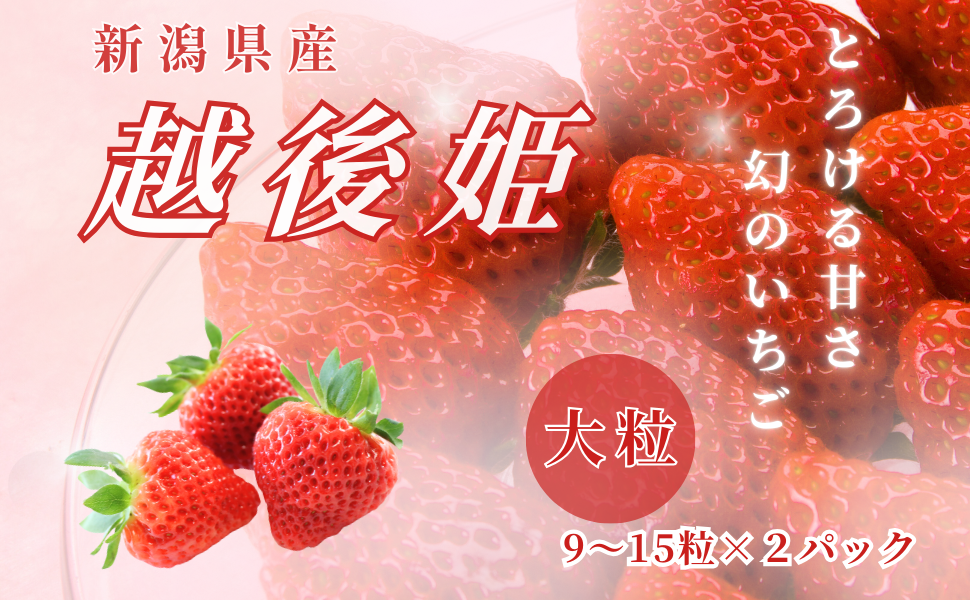 JA新潟かがやきイチオシのいちごを産地直送でお届け!「越後姫」は新潟オリジナル品種で、大粒でつやがあり、たっぷりの果汁と芳醇な香り、柔らかい果肉が特徴です。口いっぱいに広がるジューシーな甘みは、まさに絶品。旬の時期にしか味わえない、産地自慢のいちごをぜひご賞味ください◎